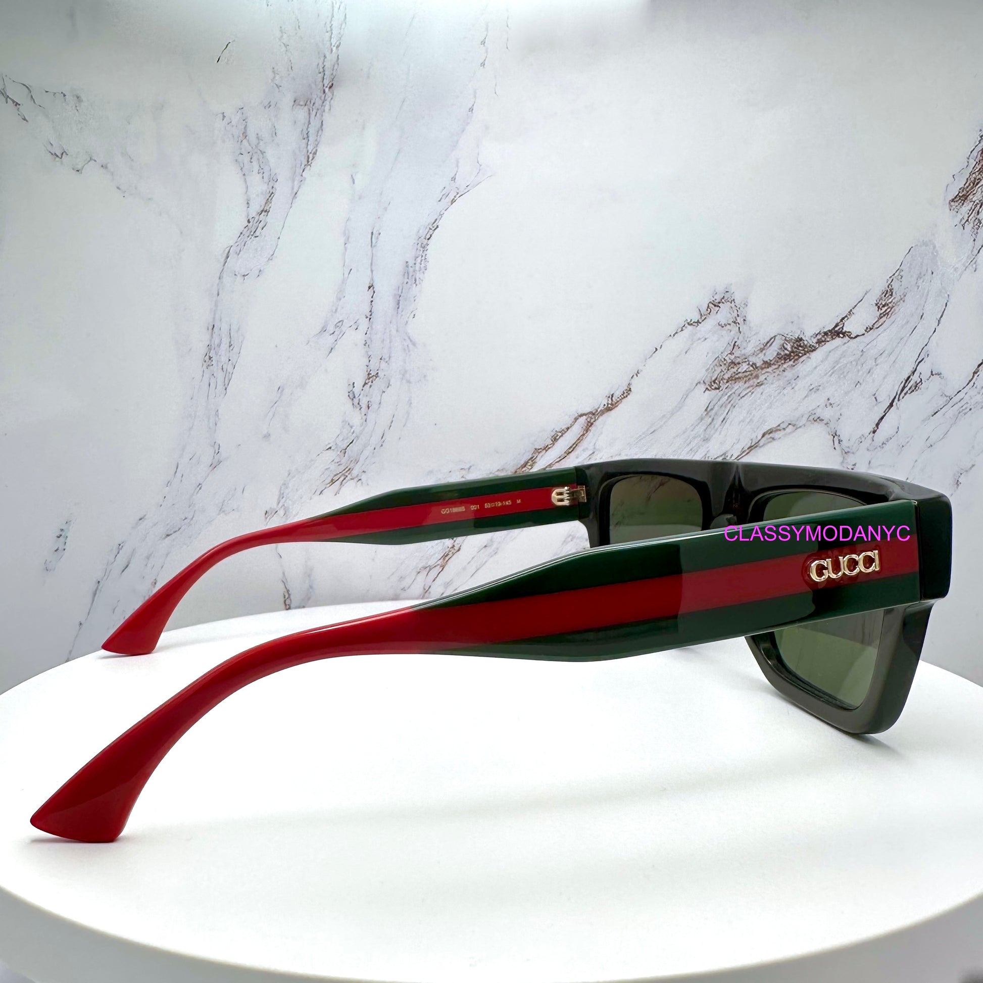 Shop Now a collection of 100% Authentic Gucci Sunglasses online at discounted prices. These square sunglasses are made of acetate with stripe web red and green temple arms with a gold metal Gucci letter logo. GG1868S 001 is a style for both men and women. Explore our exclusive designer eyewear in different styles and colors. Free Shipping! 100% Authentic.